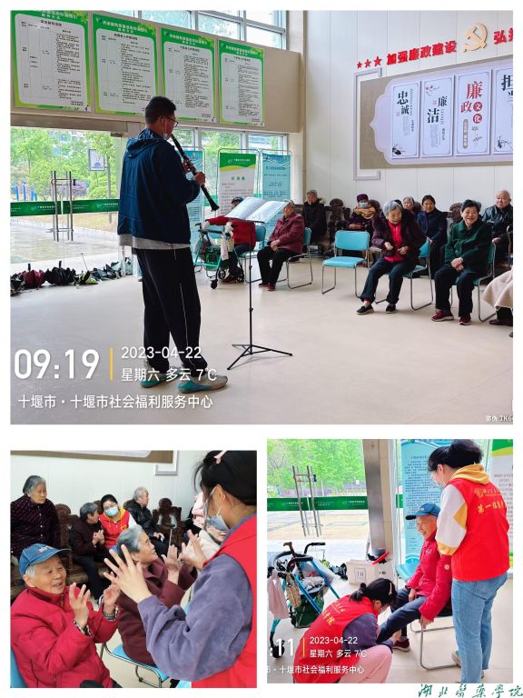 人间四月芳菲尽,上午九点整,同学们准时在十堰市慈济老年护理院集合,在认真听完社工老师讲述的注意事项后依次测量体温进入护理院。同学们表演了精彩的节目,24式太极拳展示了青年一代对传统文化的继承与发扬,单簧管演奏的苏北小调让大家仿佛置身于烟雨江南,诗朗诵《少年中国说》显示了青年一代的气力,中国舞《芳华》的优美舞姿给人以美的熏陶。随后,老人们热情地演唱红歌。互动环节,志愿者们教爷爷奶奶简单易上手的手指操,让老人们可以在闲暇时候通过手指操刺激大脑、延缓衰老。表演结束后,同学们到护理院各个楼层,与爷爷奶奶们闲聊问候。