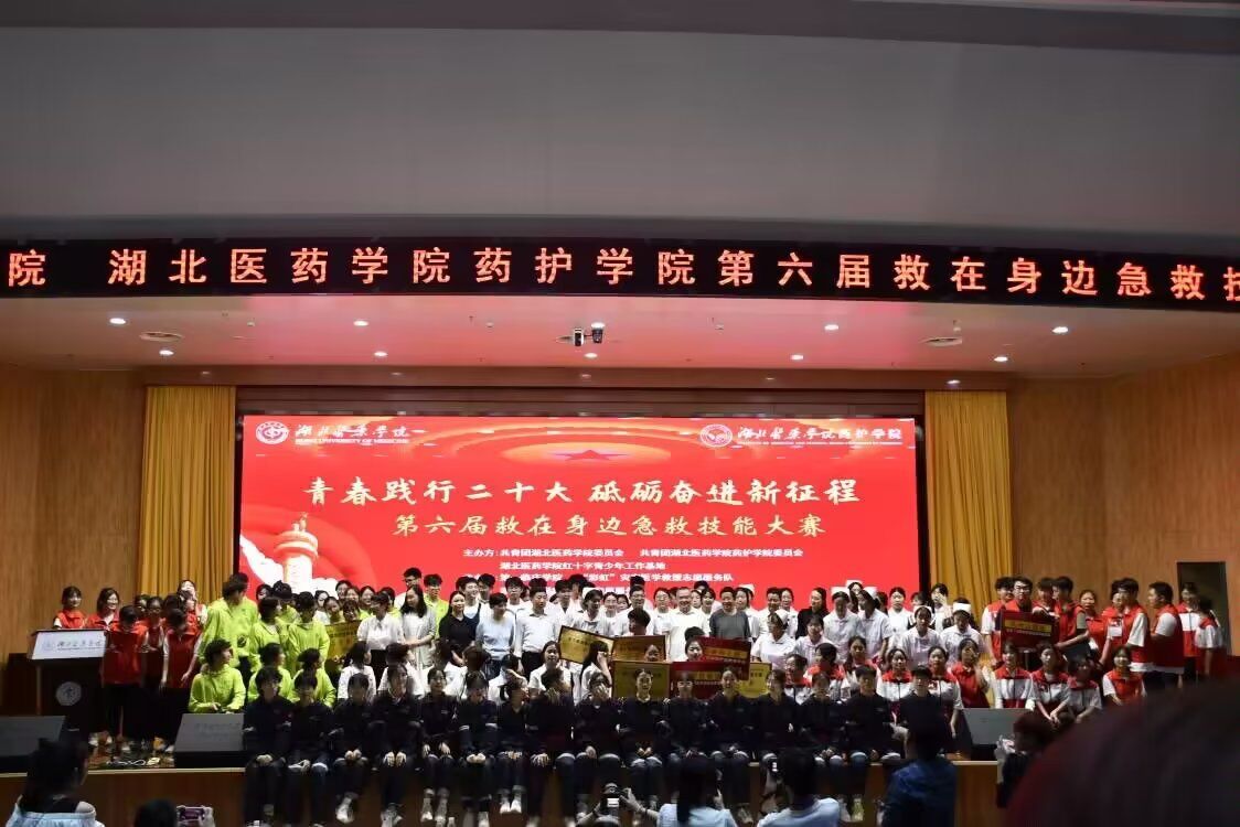 本网讯(通讯员 陈小龙 吴佳怡)2023年5月19日,由共青团湖北医药学院委员会、共青团湖北医药学院药护学院委员会、湖北医药学院红十字青少年工作基地主办,共青团湖北医药学院第一临床学院委员会、“彩虹”灾害医学救援志愿服务队承办,曙光紧急医疗志愿服务队、周丽急救志愿服务队协办的第六届“救”在身边——急救技能大赛在科教楼一楼学术报告厅顺利举行。湖北医药学院党委常委、组织部长张海蛟,湖北医药学院学工处处长、团委书记陈璞,十堰市急救中心主任、二级研究员刘家敏,十堰市市红十字会党组成员专职副会长詹秀伟,附属太和医院急诊科副主任张绪国,第一临床学院分党委书记、常务副院长邵义光出席此次活动。