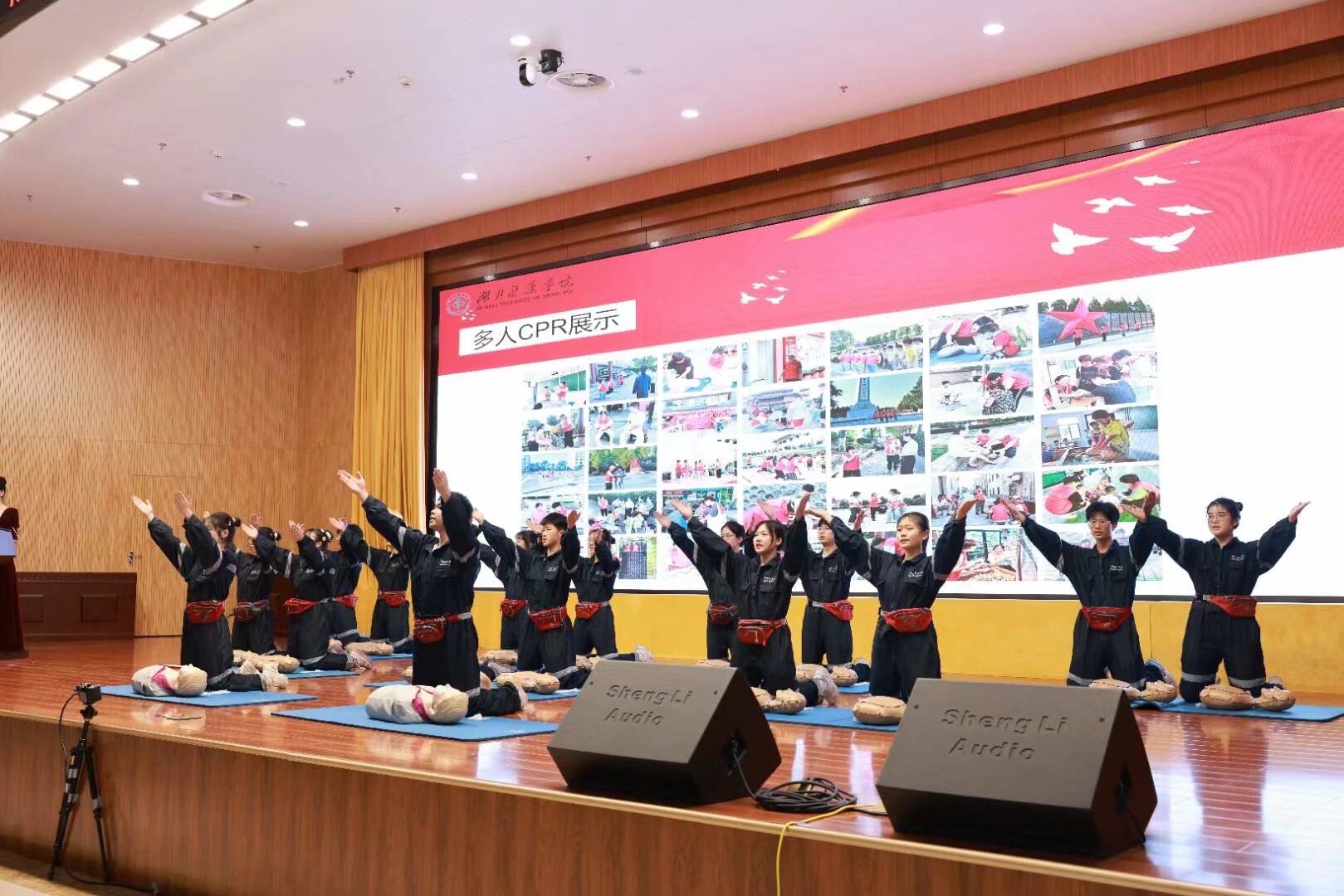 本网讯(通讯员 陈小龙 吴佳怡)2023年5月19日,由共青团湖北医药学院委员会、共青团湖北医药学院药护学院委员会、湖北医药学院红十字青少年工作基地主办,共青团湖北医药学院第一临床学院委员会、“彩虹”灾害医学救援志愿服务队承办,曙光紧急医疗志愿服务队、周丽急救志愿服务队协办的第六届“救”在身边——急救技能大赛在科教楼一楼学术报告厅顺利举行。湖北医药学院党委常委、组织部长张海蛟,湖北医药学院学工处处长、团委书记陈璞,十堰市急救中心主任、二级研究员刘家敏,十堰市市红十字会党组成员专职副会长詹秀伟,附属太和医院急诊科副主任张绪国,第一临床学院分党委书记、常务副院长邵义光出席此次活动。