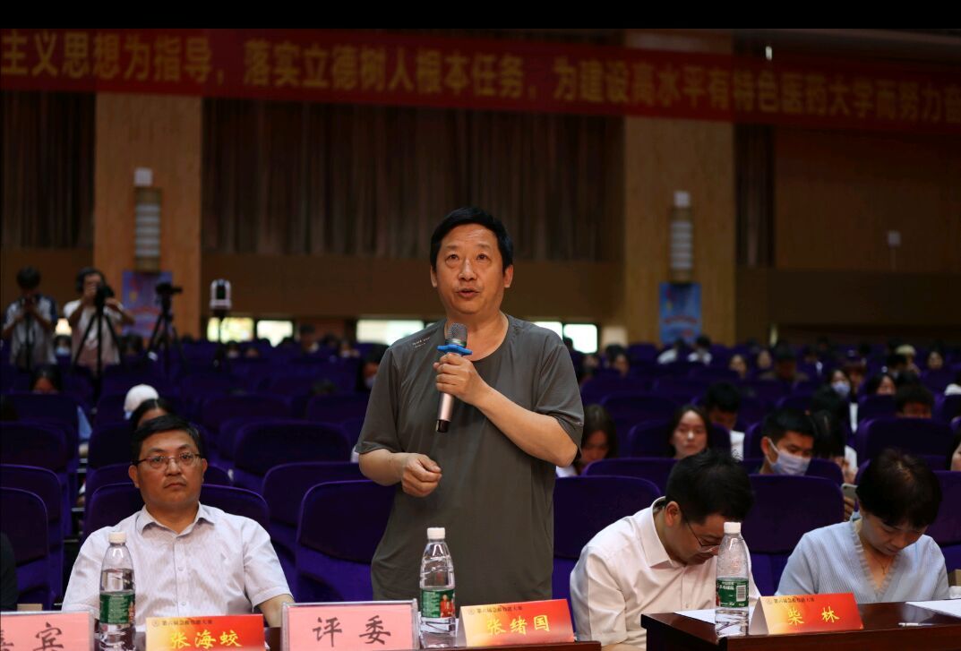 张海蛟进行总结讲话,他首先对获奖团队表示了祝贺,接着对同学们提出了三点希望:第一,弘扬理论联系实际的马克思主义优良学风;第二,弘扬“奉献、友爱、互助、进步”的志愿服务精神;第三,恪守医学生誓言,救死扶伤,除人类之病痛。