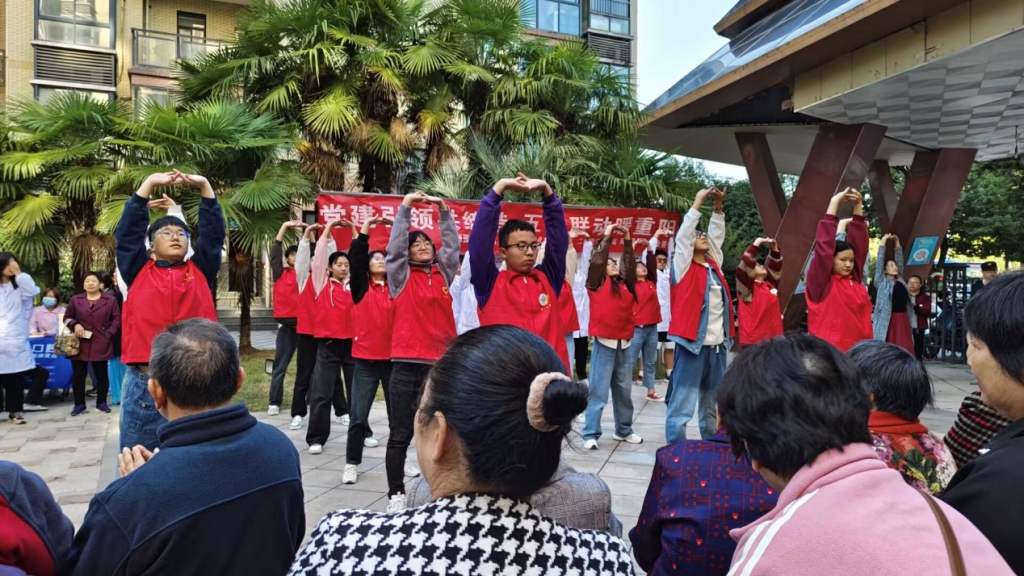 活动现场,志愿服务队成员与社区工作者相互协作,共同为老年群众带来了精彩的舞蹈表演。活力满满的文艺表演不仅为现场观众带来了欢声笑语,同时增添了节日氛围。表演结束后,社区工作者与志愿者一起切蛋糕,为老人们送去秋日的温暖和祝福。同时趁着本次活动之际,志愿者向老人们普及了保健知识,并与他们一起聊家常,讨论身体状况和兴趣爱好等,在志愿者的细致关怀下,老人们笑容满面,度过了一个难忘的节日。