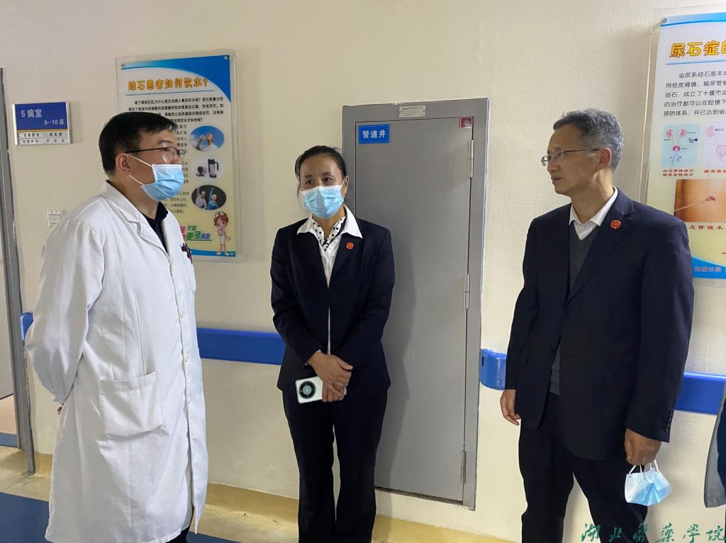 在教学督导检查中,谭艳随机走访内分泌代谢科、泌尿外科等见习科室,与见习指导老师、科室负责人及见习学生现场交流,了解见习科室学生的到岗情况、带教工作及科室的教学基本工作开展情况,认真听取指导老师及科室负责人在见习带教过程中遇到的困难。