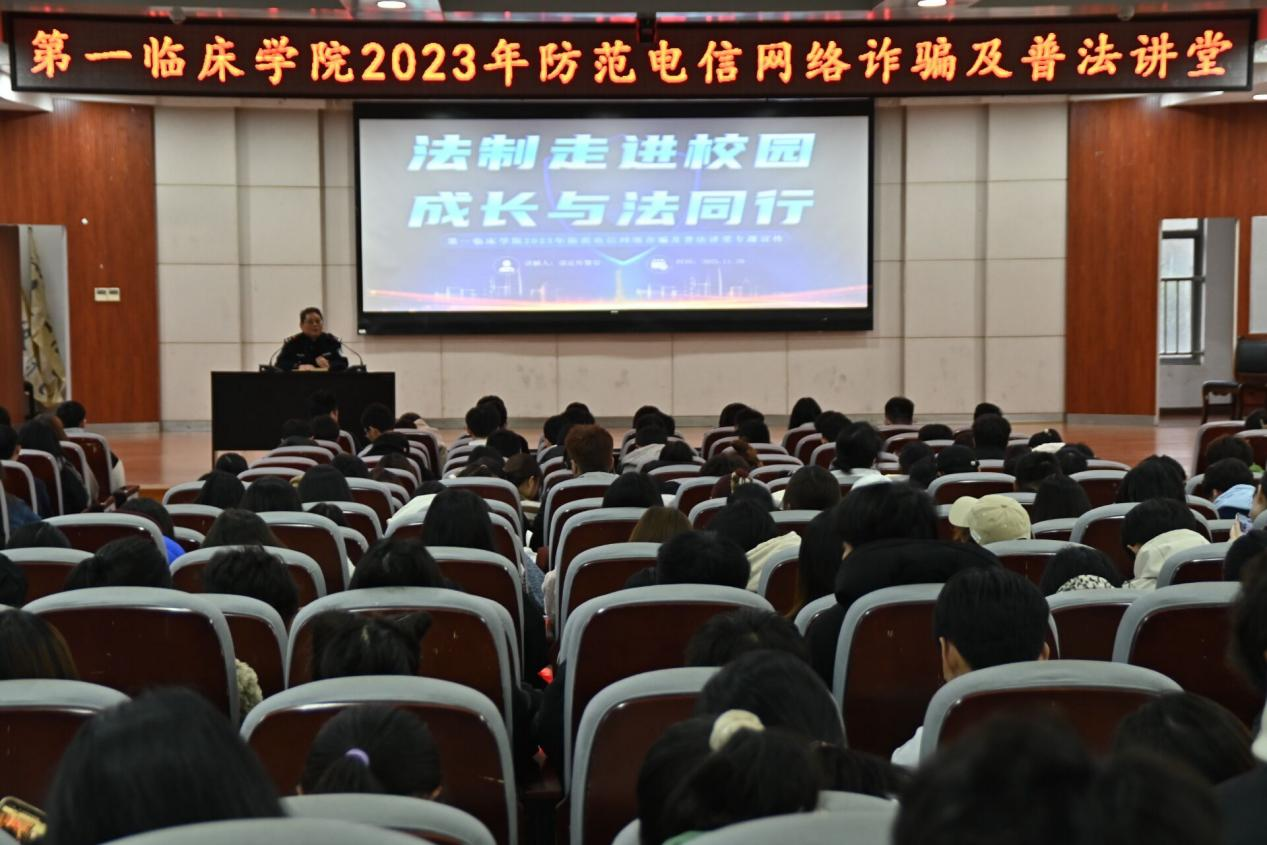 本网讯(通讯员 郑语晨)为进一步提高学生识骗、防骗能力,进一步预防电信网络诈骗案件发生,2023年11月28日下午,第一临床学院邀请十堰市公安局茅箭区分局人民路派出所邵定传警官开展反电信诈骗宣讲活动。活动在八号楼多功能厅举行,学院全体辅导员、 共300名学生聆听了报告。