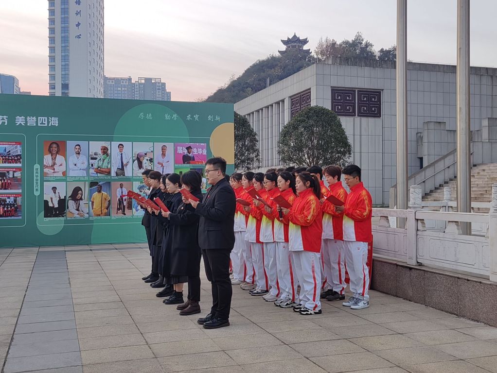 本网讯(通讯员 文/张慧丽 图/汪晓涵)为深入学习宣传习近平法治思想,引导师生做宪法的忠实崇尚者、自觉遵守者、坚定捍卫者,12月4日上午7点,学校在科教楼前举行“大力弘扬宪法精神,建设社会主义法治文化”主题升旗仪式。校党委书记郑丹凤,学工处、团委、政策法规处等部门负责人以及第一临床学院300余名师生参加本次活动。