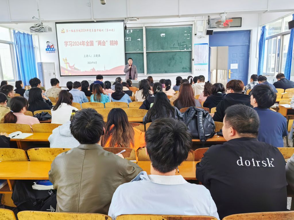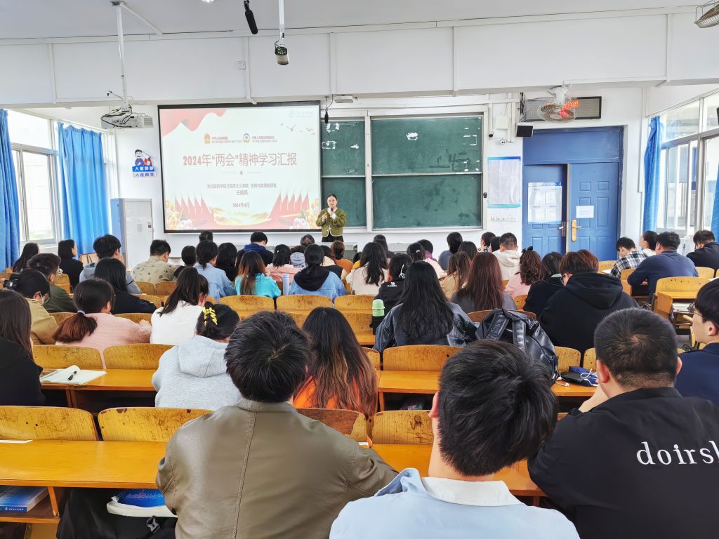 本次培训邀请马克思主义学院形势与政策教研室副主任王晓燕作专题讲座。王晓燕以《2024年两会精神学习汇报》为题,结合社会热点深入解读了两会政府工作报告中关于2023年工作回顾、2024年经济社会发展总体要求和政策取向以及2024年政府工作任务等三方面的内容,重点阐述了政府工作任务中提到的“新质生产力”、“科教兴国”等内容。