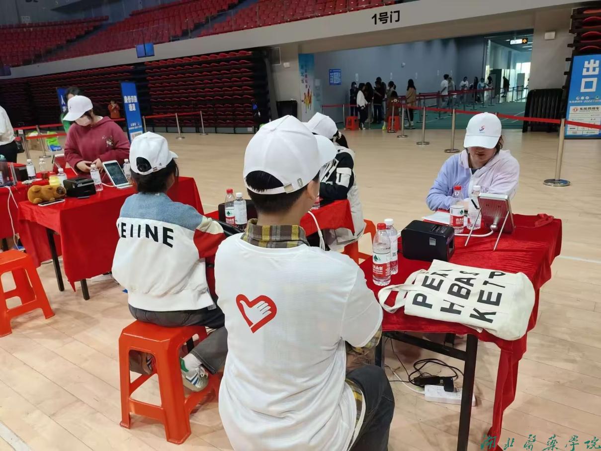 志愿者的工作贯穿整个马拉松比赛,包括赛前的物资发放、比赛中的服务供给等。4月11日,部分志愿者们已经前往十堰奥体中心进行赛前的物资包发放。安检区、礼品区、物资包等区域,到处都有第一临床学院志愿者的身影,他们热心的为参赛者提供周到细致的服务,用实际行动践行着“奉献、友爱、互助、进步”的志愿服务精神。
