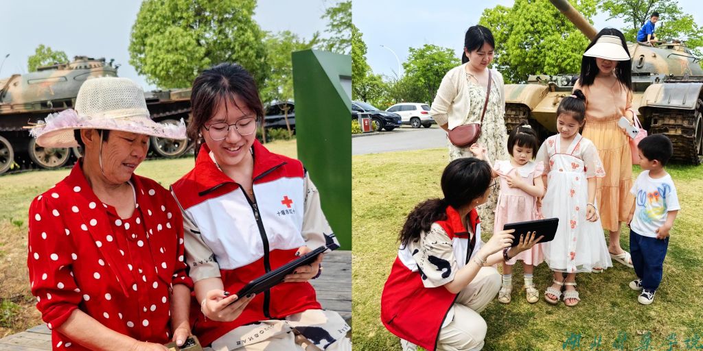 走进解放军青年林,体悟鱼水情深赤子心。公园内随处可见具有十堰文化特色的双拥元素,形象生动地将党的光辉历程和十堰重大革命历史事件、经典战役战斗、武当仙山、二汽历史、南水北调、城舰共建等内容以雕塑建筑、景墙、宣传展板等形式加以展现。参观之余,队员们和周围游客、居民进行访谈,借此宣讲井冈山精神,他们用通俗易懂的语言介绍那段艰苦卓绝的岁月,队员们以“小故事”折射“大道理”,让大家坐得下、听得进、弄得懂。