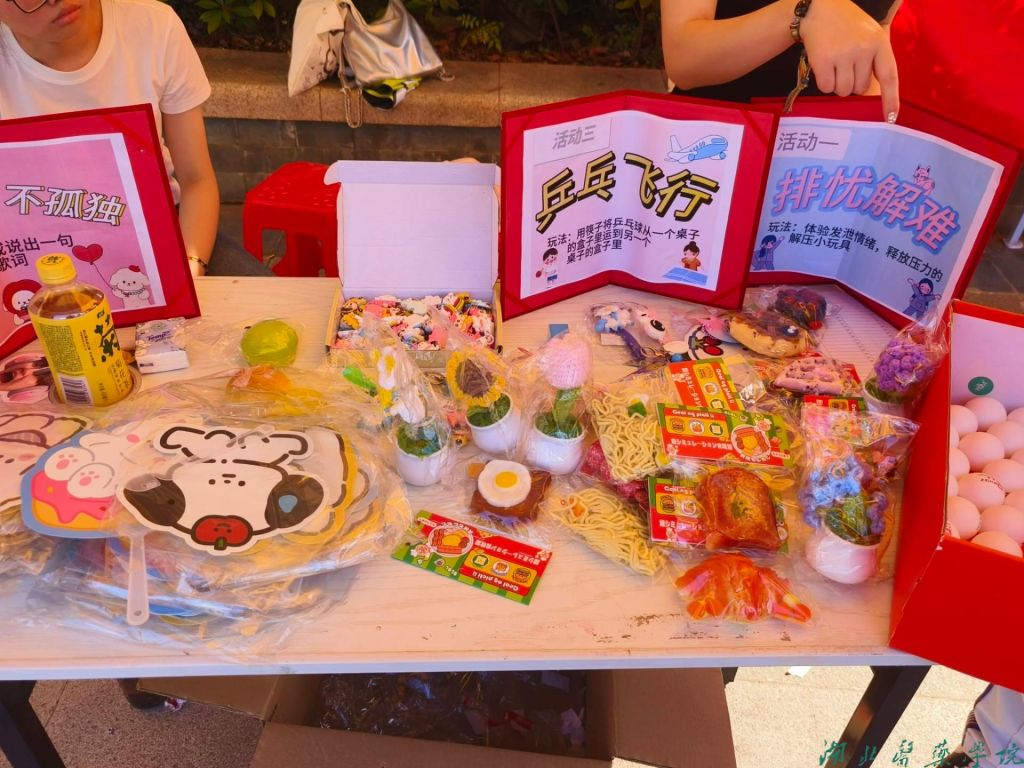 5月24日下午,第一临床学院心理辅导站在图书馆前的文明广场进行了实地摆摊,为同学们准备了丰富多彩的游戏活动,例如乒乓飞行,排忧解难等。还为大家准备了精美礼品:手工花朵、精品捏捏乐、可爱钥匙扣,以及手拿小扇子。活动中有五位同学获得了一等奖手工花朵,其他积极参与的同学获得了参与奖。