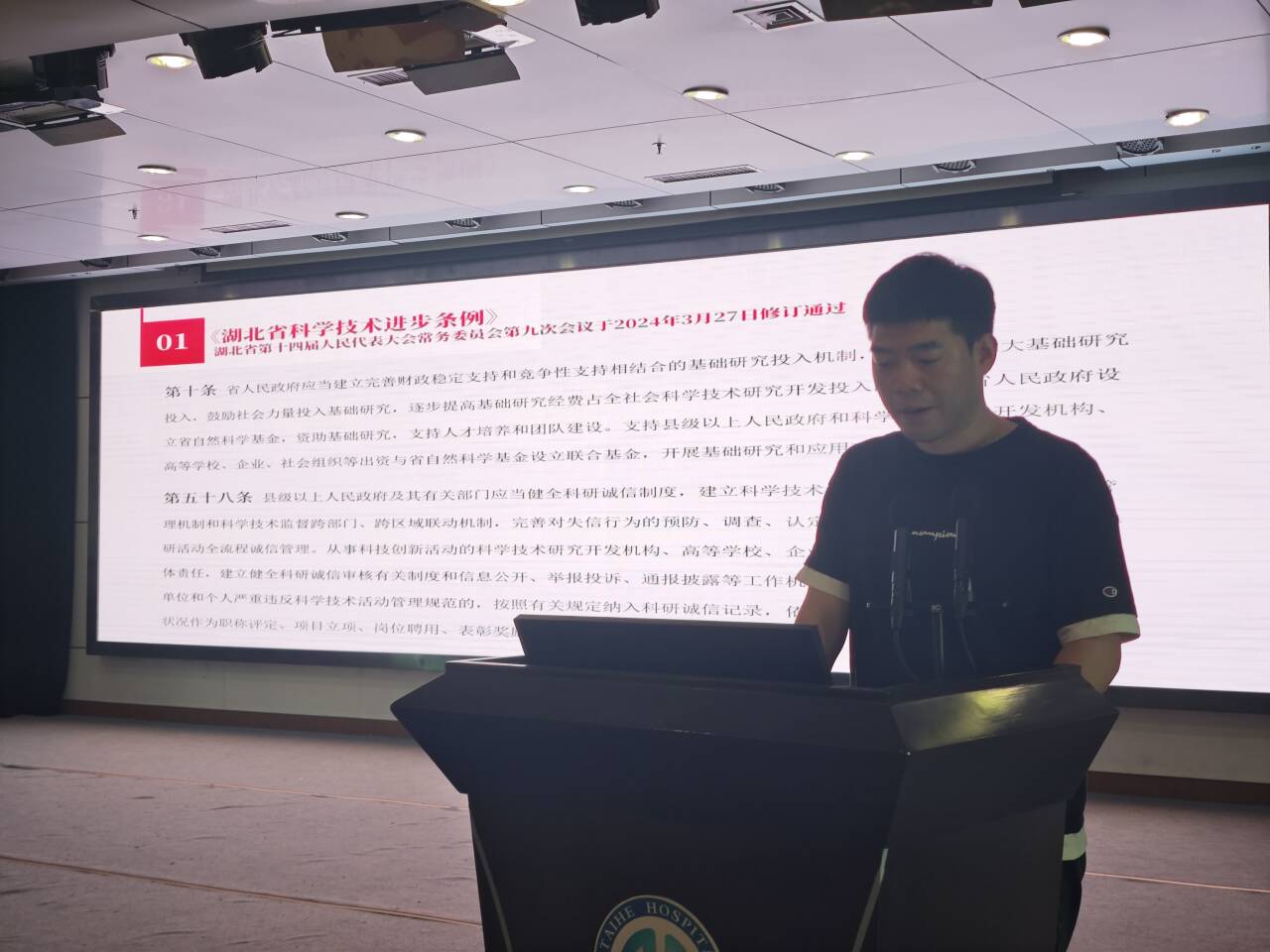 (通讯员 何尚峰)2024年5月30日下午2点半,为贯彻落实习近平总书记关于科技创新的重要论述,加强国家科普能力建设,深入实施全民科学素质行动,大力弘扬科学家精神,配合我校第九届科技节的相关活动,第一临床学院研究生班于太和医院敬业楼学术报告厅举办了科技节主题班会,第一临床学院科研办涂梦薇老师、何尚峰老师、23级研究生辅导员丰启盈老师参与会议。