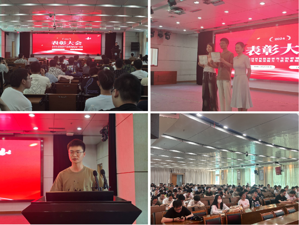 班会第一项议程,对在全国医科院校研究生院联盟2024年度研究生临床能力(消化系统疾病)竞赛中获得优胜奖的吴明晖和潘婷同学进行表彰,科研办主任涂梦薇老师为两位获奖学员颁发荣誉证书。随后,获奖学员代表吴明晖同学分享本次参赛的经验和感想,除了参赛过程中的一些技巧和经验外,他还建议各位同学不仅要在平时磨练和精进自身临床技能,更要抓住机会多参加学术交流和竞赛活动,以赛促练,在实践过程中和其他医学院校的研究生同台竞技,发现自身的不足,以期在日后针对性强弱项,补短板。