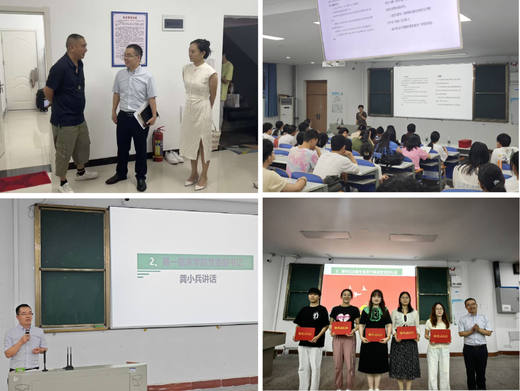 7月3日,学院党委副书记龚小兵带队走访新生宿舍,听取学生和家长的意见建议,叮嘱同学们注意安全,勉励同学们合理安排时间、保持良好心态、认真做好学业规划、打好专业基础。7月3日晚,学院邀请直属附属太和医院教学办主任吴珍和院领导、学工办、团委等负责同志参加新生入学教育主题班会,吴珍以《太和医院研究生教育概况》,详细介绍了医院研究生培养制度。随后,学院党委副书记龚小兵为新生党员代表发放党纪学习礼包,开展党纪教育,要求同学们保持“空杯、归零”心态,牢记四个敬畏,即敬畏学校、敬畏医院、敬畏生命、敬畏规矩;做到四个遵守,即遵守党章党纪党规、遵守法律法规、遵守校纪校规及院纪院规和遵守行业规范。最后,新生共同学习研究生手册。