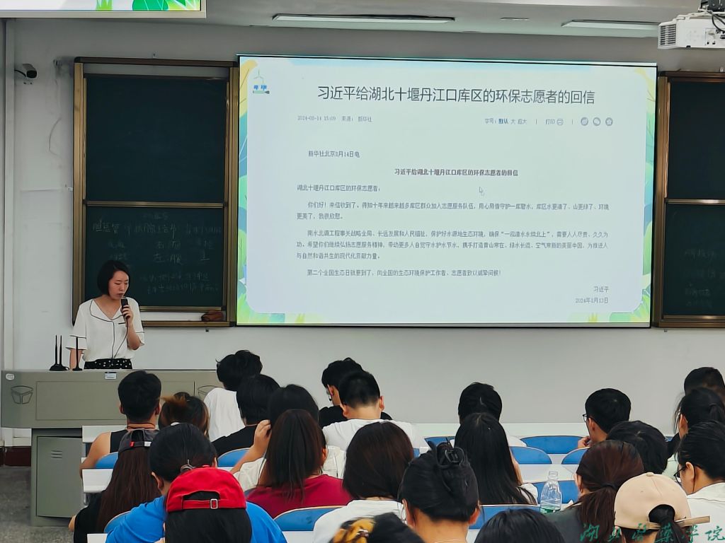 集中学习环节,辅导员带领大家学习了习近平总书记给湖北十堰丹江口库区的环保志愿者的回信内容,学原文、悟精神,深刻领悟习近平总书记回信的重要意义、对南水北调工程的重视、对库区保护和发展的关心牵挂等。
