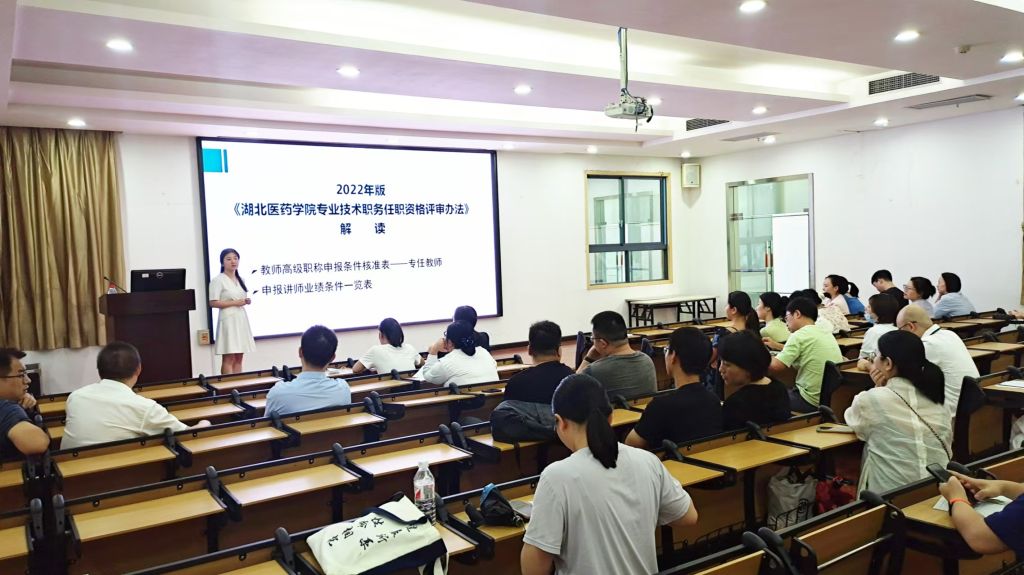 李嫣就2022版《湖北医药学院专业技术职务任职资格评审办法》进行解读,对近两年申报中、高级职称业绩条件中受到老师们关注较多的点进行了详细讲解,帮助老师们理解评审办法、梳理申报流程,并指导大家正确高效填写申报表。在答疑环节,李嫣老师就教学工作量、科研成果署名认定等问题与老师们做深入交流。