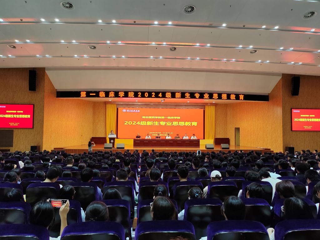 本网讯(通讯员姚莉)金秋九月,序章再启。为增强2024级新生对学校的了解,强化新生对所选专业的认同感和专业发展信心,明晰专业学习规划和未来职业发展方向,2024年9月10日,第一临床学院在科教楼学术报告厅召开了2024级新生专业思想教育大会。第一临床学院党委书记、常务副院长邵义光,党委副书记龚小兵,副院长方志成,副院长万云燕,麻醉学系主任刘菊英,儿科学系主任李涛,康复医学系副主任高峰及学院各行政部门、辅导员和829名新同学参加此次大会。会议由教学办主任姚莉主持。