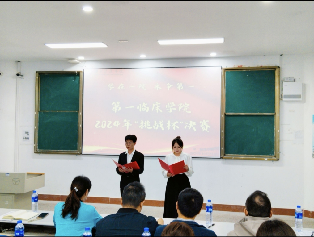 本网讯(通讯员 赵福厦 黎嘉欣 潘金戈)10月25日,第一临床学院“挑战杯”院内选拔赛决赛在5111教室举行。学院党委副书记龚小兵、校团委思想引领部主任郭俊参加并担任评委。