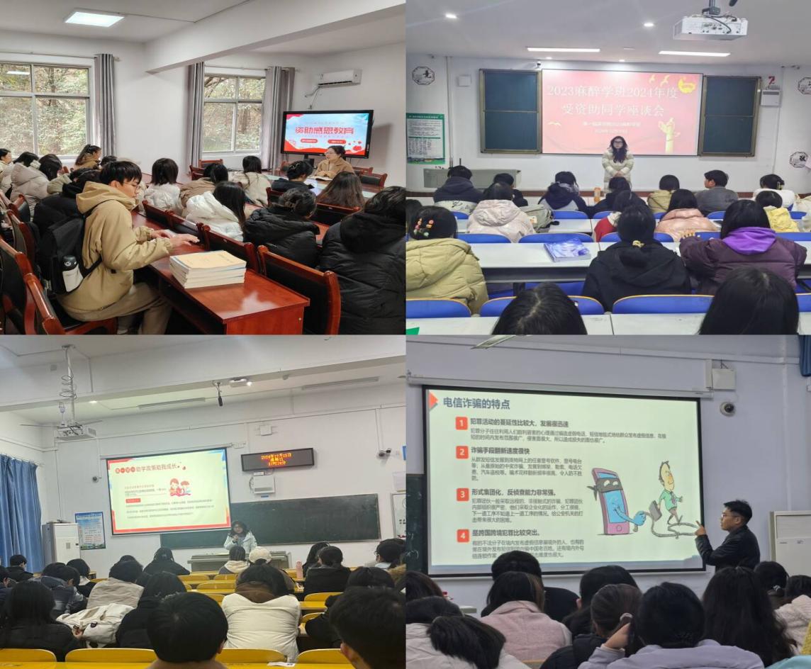 在本学期奖助学金即将发放到学生手中之际,学院各班级通过主题班会和座谈会,教育受助学生要懂得珍惜,学会感恩,树立正确的消费观、成才观和价值观。要求受助学生加强学风建设,将学习作为大学生涯的第一要务,积极参加学校教育教学活动。鼓励同学们力所能及地参加志愿服务,争取德智体美劳全面发展。开展防范电信诈骗宣传,提高同学们的防诈意识,教会学生识别网络诈骗的手段。有的受助同学自发分享受助经历,讲述国家资助政策的温暖与力量,表态要合理使用受助资金,全身心投入专业知识学习,诚信应考,争取以优良学习成绩回报社会。(审稿:龚小兵)