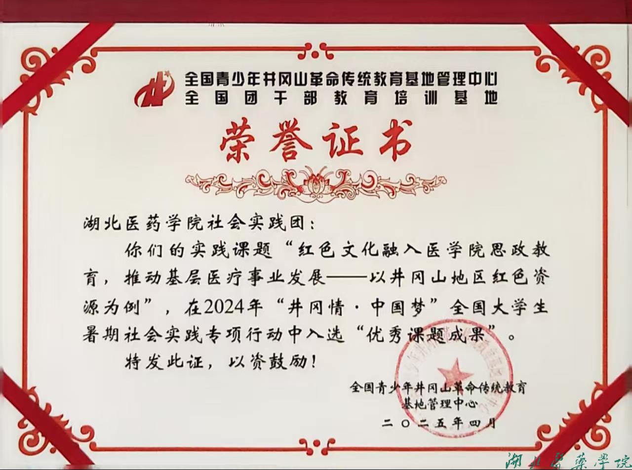 本网讯(通讯员 姜慧林 潘金戈)近日,由团中央青年发展部、全国青少年井冈山革命传统教育基地联合举办的2024年“井冈情·中国梦”全国大学生暑期社会实践专项行动评选结果揭晓。第一临床学院“红色千里行”社会实践队凭借扎实的实践成果,在全国数百支团队中脱颖而出,荣获“优秀课题奖”。“井冈情·中国梦”全国大学生暑期社会实践专项活动由团中央青年发展部、全国青少年井冈山革命传统教育基地管理中心共同主办,旨在引导青年学子传承红色基因,赓续革命薪火。