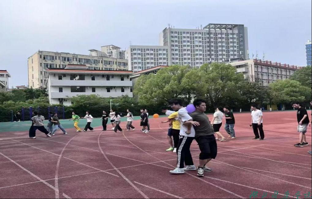在“背对背运球” 挑战中,两人一组的搭档需以背部紧贴夹住排球,在不借助双手的情况下同步前行。这一环节不仅考验肢体协调性,更需双方高度信任与沟通。只见有的小组轻声计数 “一二一” 调整步伐,有的则以 “侧身蟹步” 保持平衡。当第四小组的韩悦琪和秦飞杨因步伐失调导致球落地时,两人相视一笑,迅速捡起球重新出发,赢得场边掌声。最终,第一小组以 1 分 20 秒的佳绩夺冠,而落后的三组则在 “模仿表情包拍照” 惩罚中大展创意 —— 有人模仿熊猫比耶,有人摆出 “思考者” 造型,逗得全场捧腹。心理委员卢苗感慨:“原来默契不仅是速度,更是失误时不抱怨、重来时不放弃的信任”。