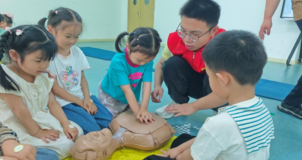 演示结束后,孩子们踊跃参与实践。在队员们的一对一指导下,孩子们尝试进行心肺复苏模拟操作,学习包扎技巧,现场气氛热烈又有序。从最初的紧张生涩,到逐渐熟练规范,孩子们在实践中掌握急救技能,也将安全意识深植心间。