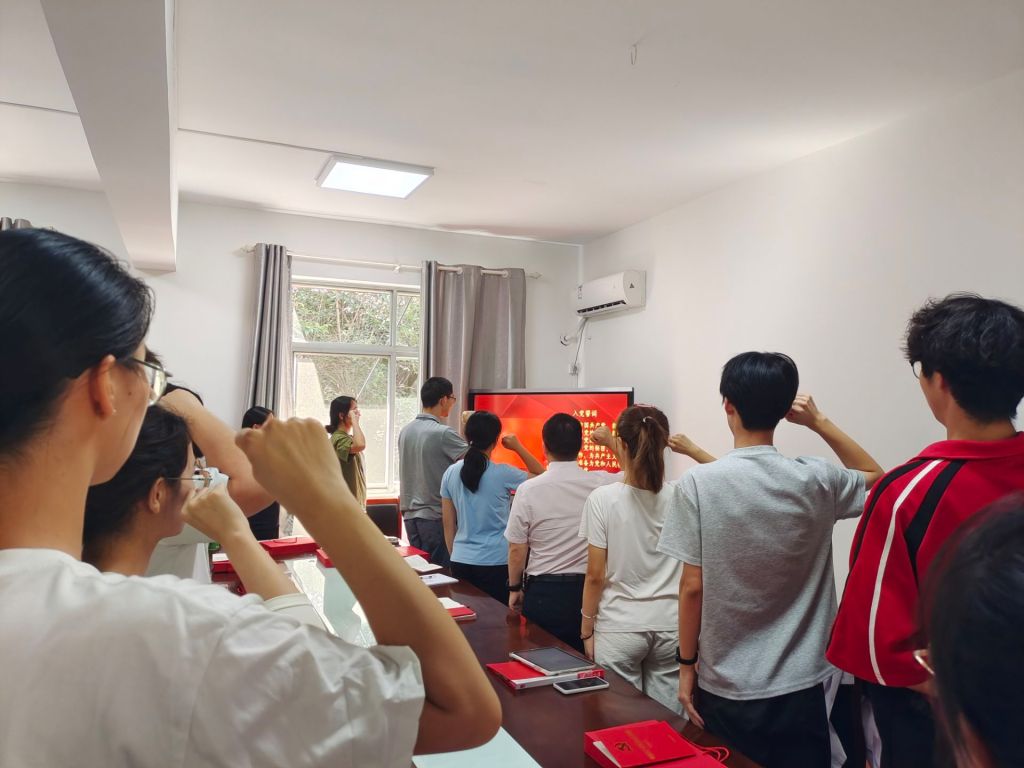 本网讯(通讯员 洪敏)6月27日下午,第一临床学院在党员活动室举行新发展学生党员入党宣誓活动,学院党委副书记龚小兵及新发展学生党员代表参加活动。