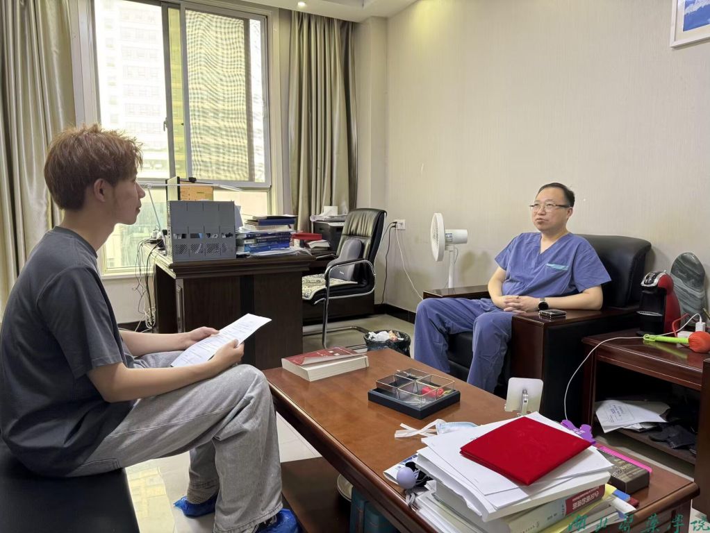 在北京,队员们采访了首都医科大学附属北京友谊医院麻醉手术中心主任王云老师,在采访中王老师分享了他在科研和临床领域的耕耘心得,他十分感激母校的培养:“湖医药是我从医梦想的起点”,王老师曾数次返回母校开展讲座,并无私捐助贫困的学弟学妹,他勉励在校同学们心怀梦想,脚踏实地,培养自己坚忍不拔的品格,砥砺前行。