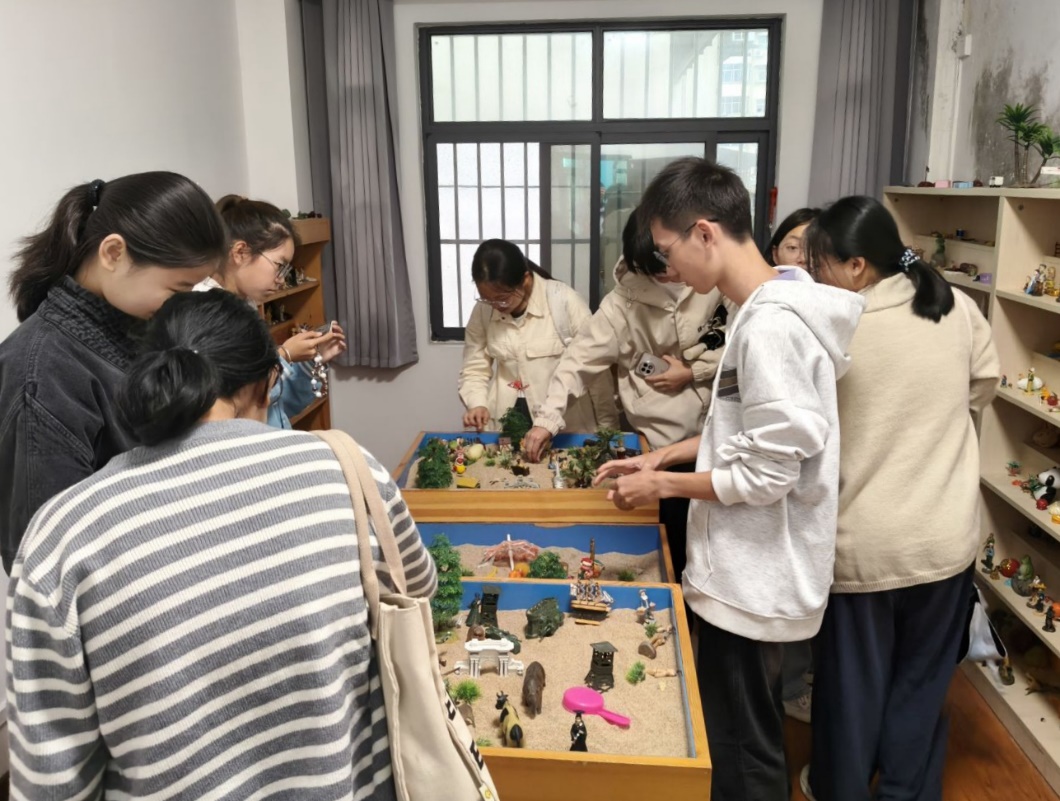 进入心理健康教育中心,一种温馨且愉悦的氛围扑面而来:这里的色调柔和,布置舒适,仿佛在轻声细语中传递着安心与宁静。在志愿者的带领下新生们依次参观了心理咨询室、团体辅导室、心理CT室、音乐放松室、情绪宣泄室等功能区域,并进行了实地操作体验。