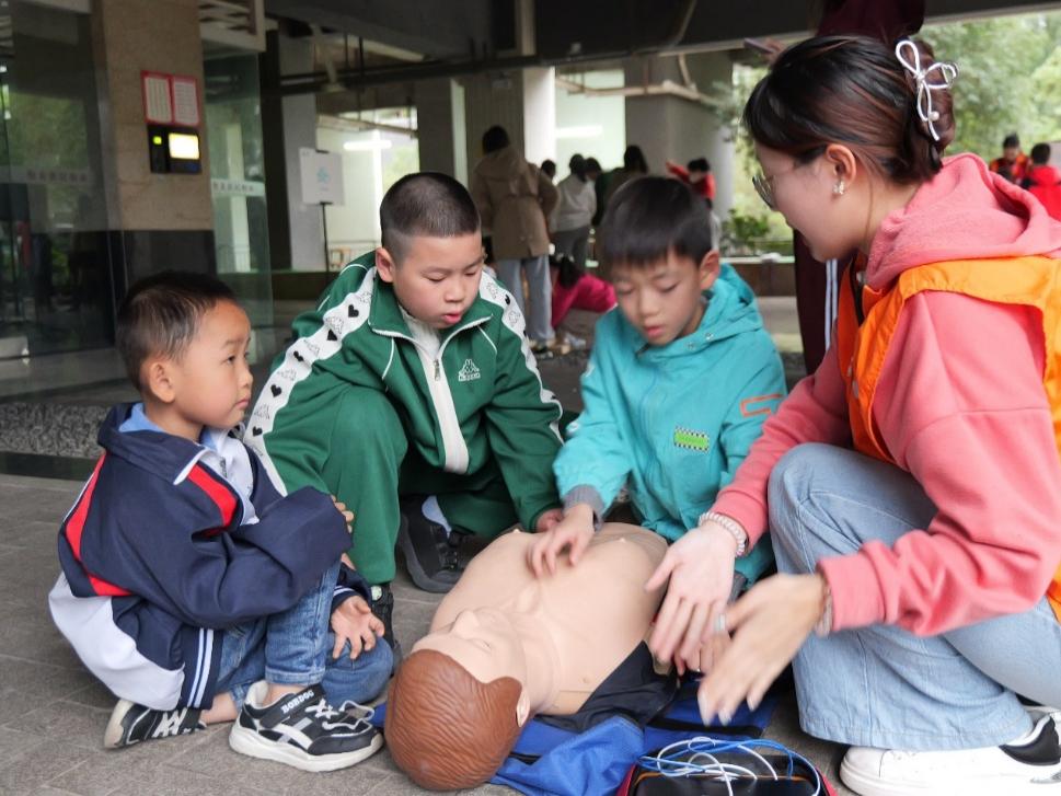 11月23日,吉祥社区口袋公园内,服务队结合社区居民结构特点,增设了老年人常见意外急救、儿童安全防护等内容,通过情景模拟“老人跌倒如何救助”“幼儿气道异物如何处理”等场景,让居民在互动体验中加深记忆。现场发放的急救知识手册图文并茂,汇总了核心急救步骤与求助方式,方便居民随时查阅学习。