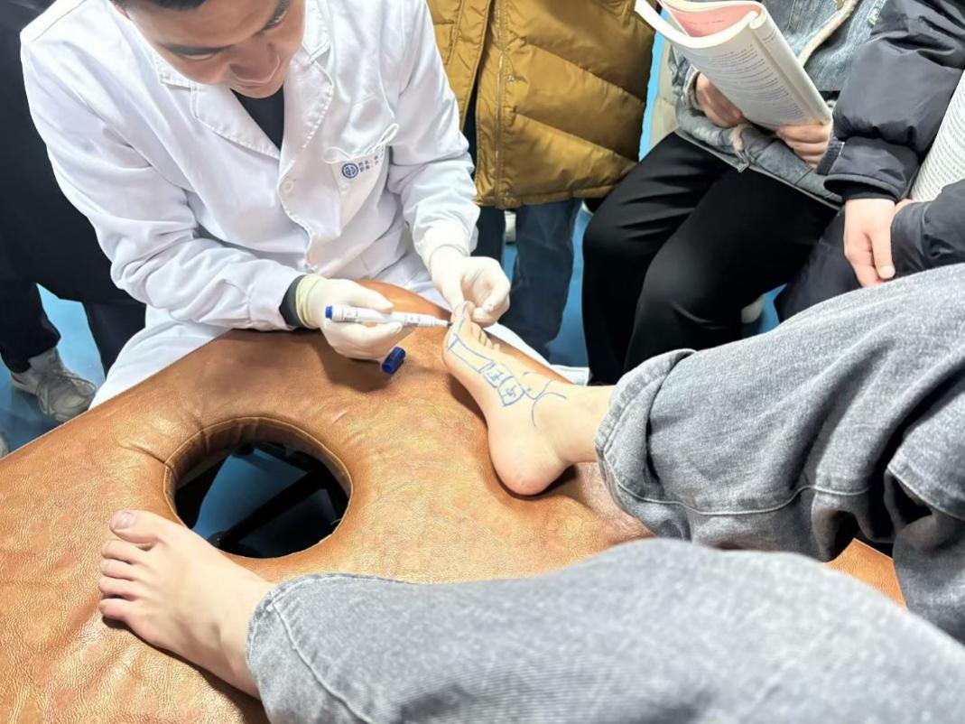 培训现场,赵乐老师结合临床案例与专业知识,围绕足脊筛查的核心流程、关键指标与操作规范展开细致讲解。从足弓形态判断、脊柱力线评估到常见异常情况识别,通过图文结合、现场演示的方式,将抽象的专业知识转化为通俗易懂的实操技巧,帮助学生快速掌握筛查核心要点。“足脊健康直接影响青少年生长发育,筛查时既要精准识别问题,也要用温和的方式与参与筛查人员沟通。”赵乐老师特别强调了筛查过程中的人文关怀,引导学生将专业素养与服务意识相结合。