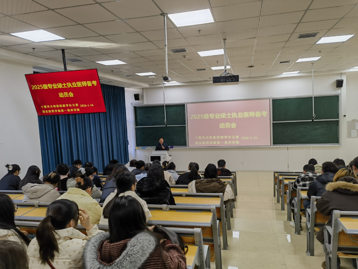 直属附属太和医院教学办公室主任廖汉林讲授省住院医师规范化培训轮转管理系统(学生端)操作,明确规培结业考试的结果运用。他积极开展了执业医师备考动员会,带大家一起系统地梳理了执业医师理论与技能考试的核心结构、备考阶段划分及重难点突破方法,结合住院医师规范化培训轮转管理系统的实操要点,明确了临床实践中的考核标准、时间节点及注意事项,帮助同学们厘清学业路线图,点亮职业前行灯。