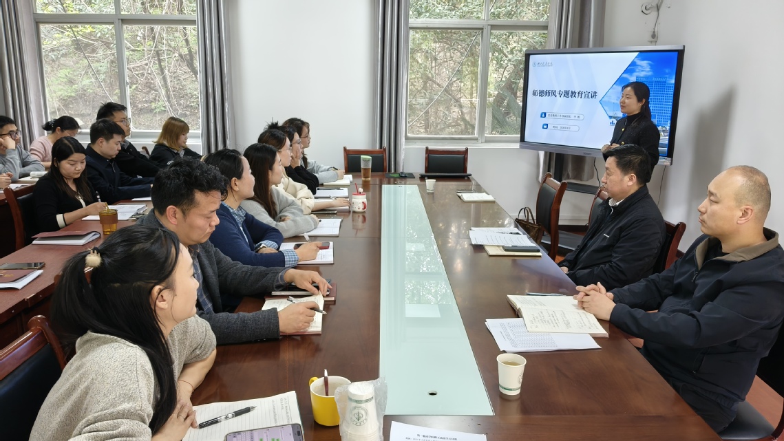 宣讲会上,李嫣副部长紧扣新时代高校师德师风建设核心要求,对《新时代高校教师职业行为十项准则》进行全面、深度解读,逐条明晰教师职业行为规范与纪律红线,清晰界定可为与不可为事项,引导全体教职工深刻领会师德师风建设的核心内涵。宣讲过程中,她结合高校师德警示教育、案例分析,深刻剖析师德失范行为带来的严重危害与恶劣影响,强调全体教职工要严守师德底线、恪守职业道德,自觉抵制不良风气,始终做到为人师表、以身作则。