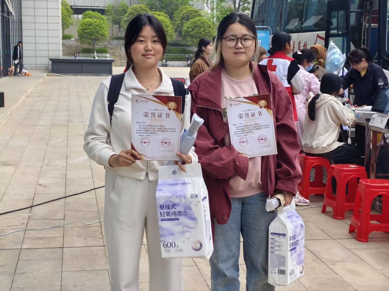 活动现场忙碌却有序,“热血承医者初心 青春展学子担当”“献血传递大爱 青春不负韶华” 等横幅标语格外醒目。在志愿者引导下,同学们有序排队,依次完成信息登记、体检筛查等流程。刚下课便匆匆赶来的首批献血者,已经陆续领取到献血荣誉证书。当负责填写证书的志愿者问道“周lei是哪个lei?”时,旁边的2023级麻醉学班同班的同学自豪地大声答道:“雷锋的雷!”